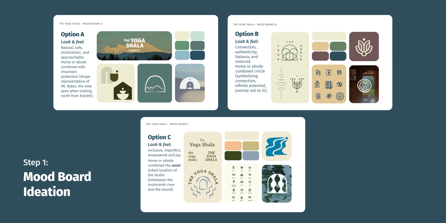 The Yoga Shala Everett came to me looking for a brand that spoke to the nature and community of the Everett area. Their studio is a place for the community to come and gain confidence, strength and be centered. Through several rounds of exploration, we landed on a logo representative of the nearby Snohomish river, water as an energy source, and movement in many yoga poses.