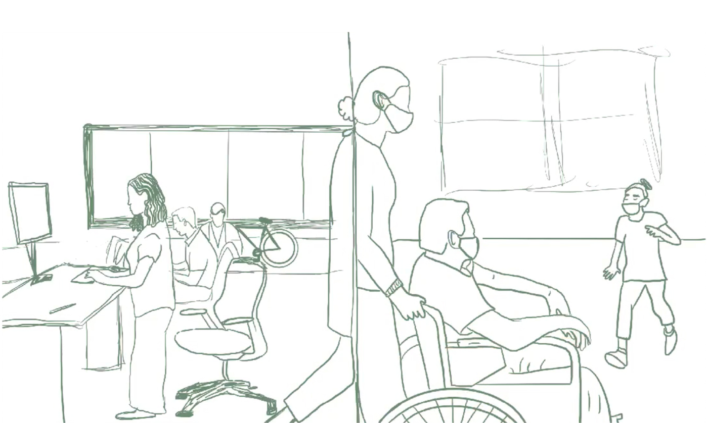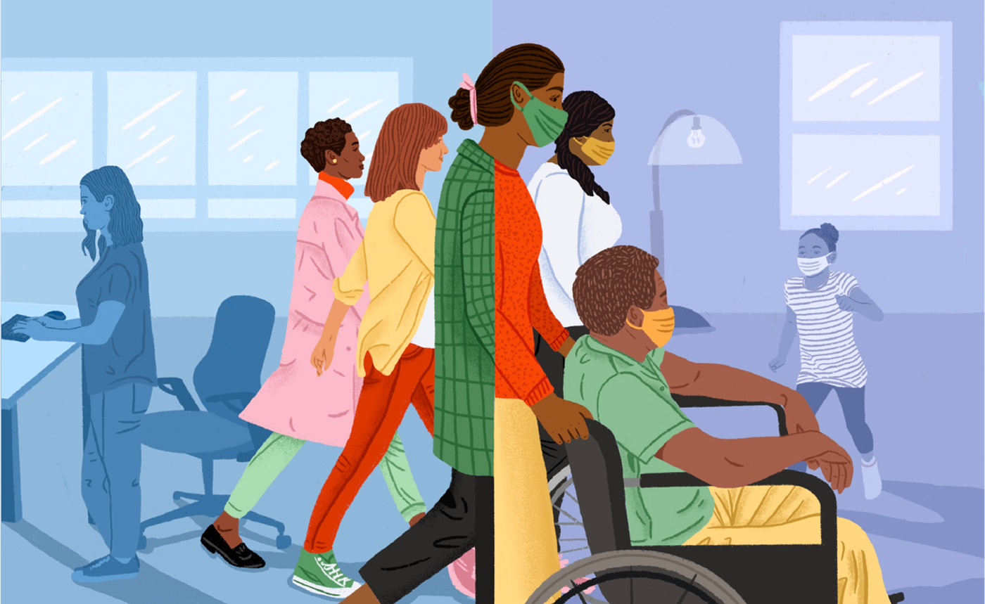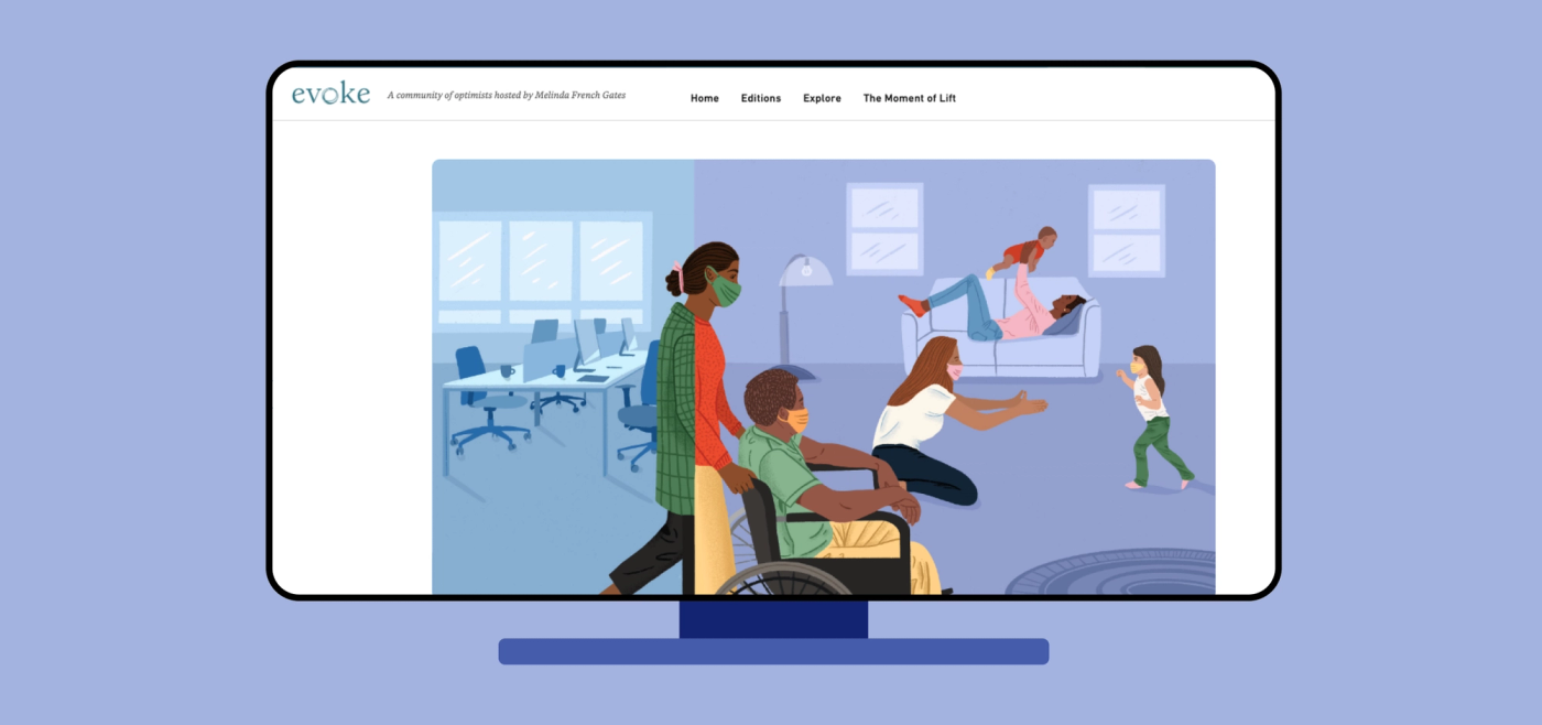 Editorial illustration for Evoke.org exploring how the pandemic exposed the nation's broken caregiving system, created in partnership with Pivotal Ventures.
