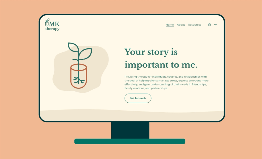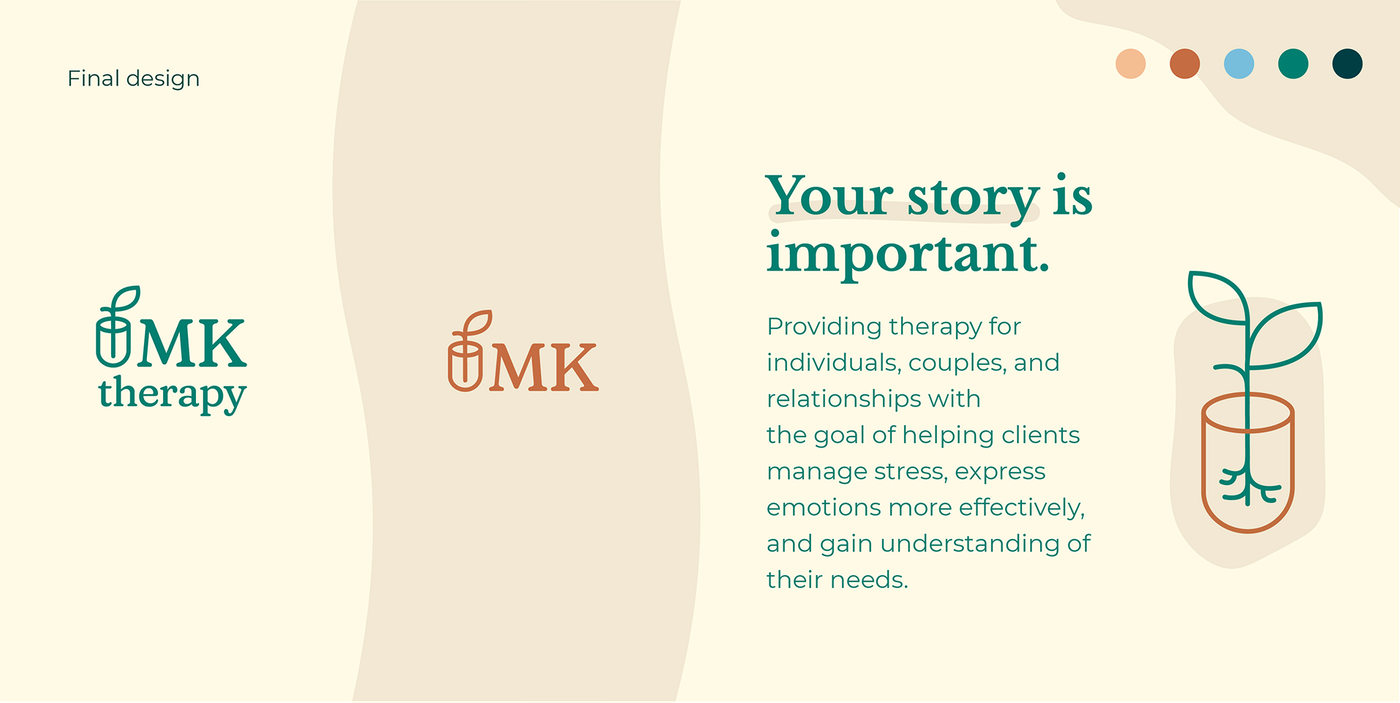 Comprehensive brand redesign for a licensed therapist, creating a cohesive identity that evokes personal growth and emotional comfort through logo, typography, and color.