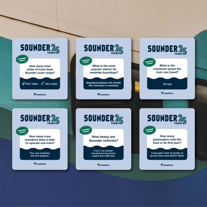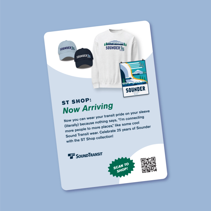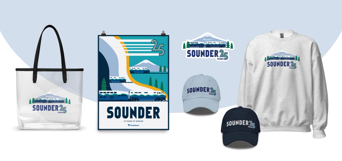 Branding for Sounder Train's 25th anniversary, blending vintage character with modern design inspired by northwest scenery along the route.
