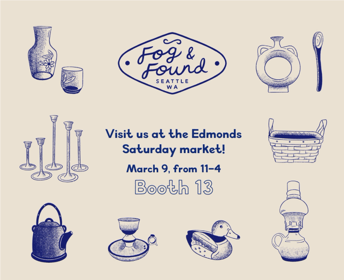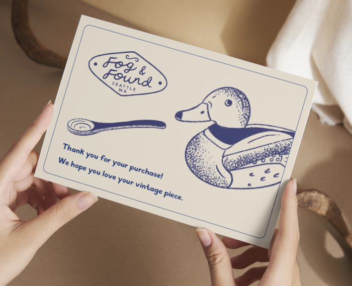 Fog & Found consists of thoughtfully curated vintage art and objects meant to elevate daily living. The founder wanted a brand that nodded to old vintage logos with a touch of the cozy pacific northwest, where the shop is based. Inspired by the founder's beautiful flat lay photos, I also created a package of illustrations for her to use in promotional products, social posts, etc.