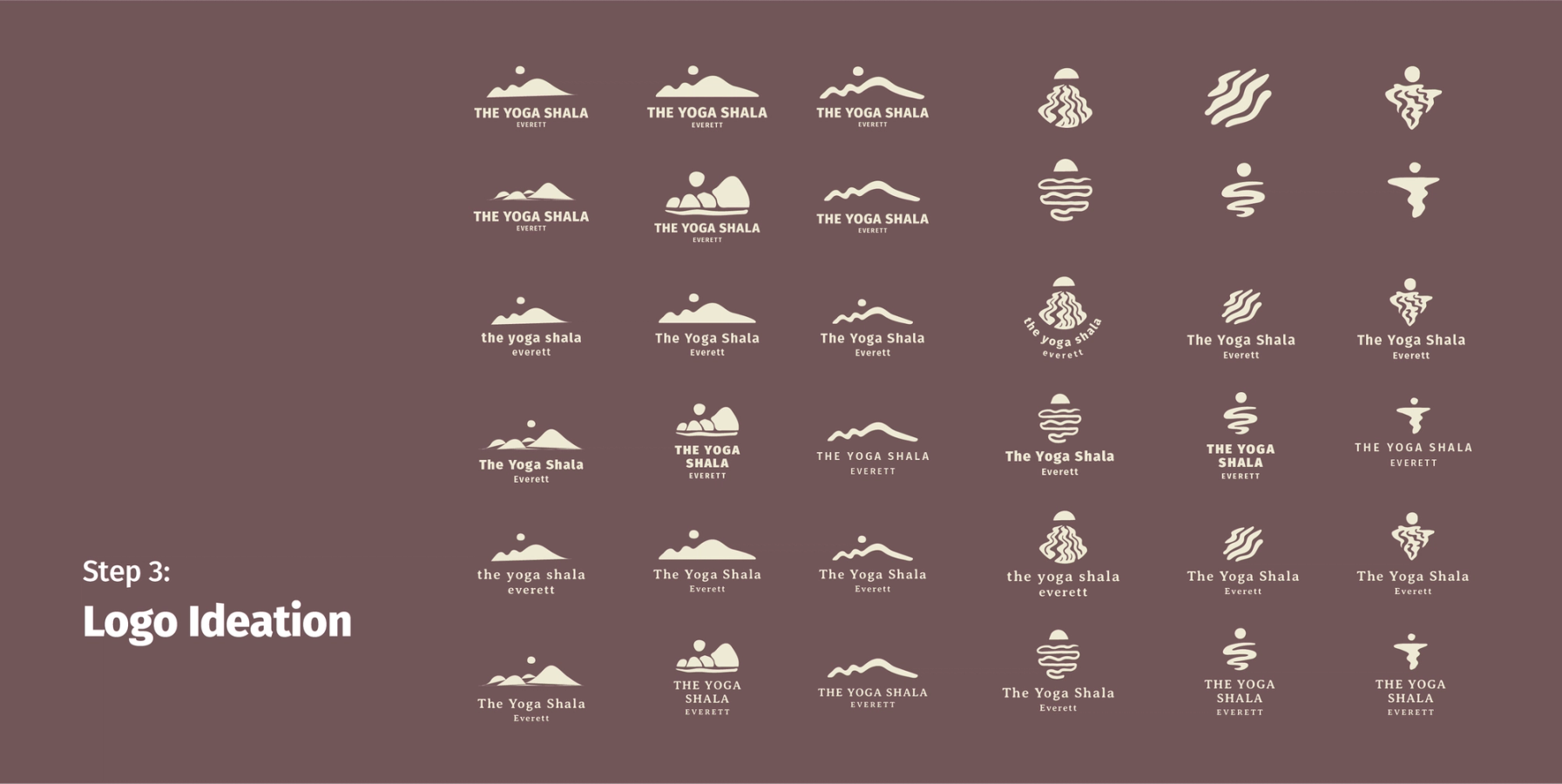 The Yoga Shala Everett came to me looking for a brand that spoke to the nature and community of the Everett area. Their studio is a place for the community to come and gain confidence, strength and be centered. Through several rounds of exploration, we landed on a logo representative of the nearby Snohomish river, water as an energy source, and movement in many yoga poses.